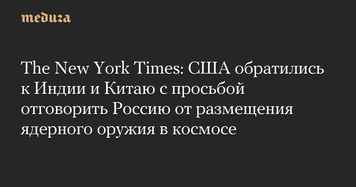 The New York Times: США обратились к Индии и Китаю с просьбой отговорить Россию от размещения ядерного оружия в космосе