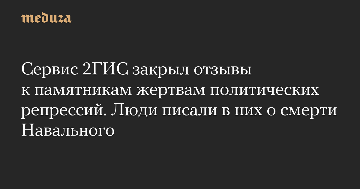 Сервис 2ГИС закрыл отзывы к памятникам жертвам политических репрессий. Люди писали в них о смерти Навального