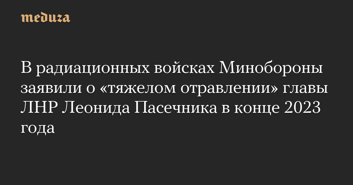 В радиационных войсках Минобороны заявили о «тяжелом отравлении» главы ЛНР Леонида Пасечника в конце 2023 года