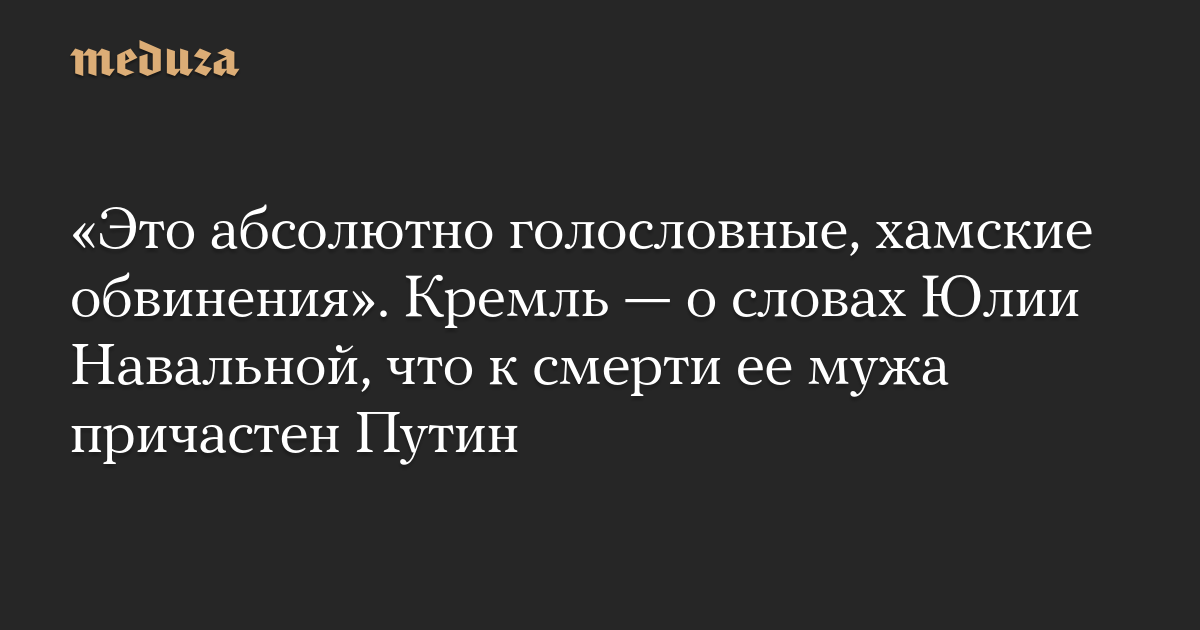 В Кремле считают «голословными и хамскими» обвинения Юлии Навальной в том, что к смерти ее мужа причастен Владимир Путин. Об этом на брифинге для прессы заявил пресс-секретарь президента РФ Дмитрий Песков.