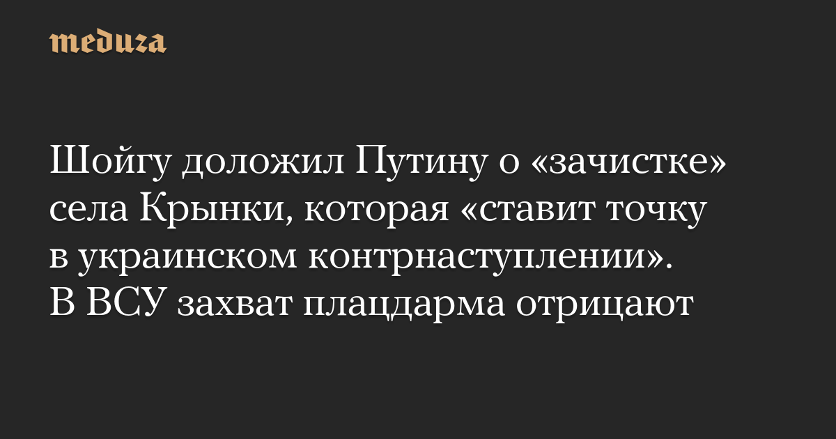 Шойгу доложил Путину о «зачистке» села Крынки, которая «ставит точку в украинском контрнаступлении». В ВСУ захват плацдарма отрицают