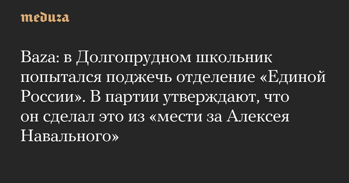 Baza: в Долгопрудном школьник попытался поджечь отделение «Единой России». В партии утверждают, что он сделал это из «мести за Алексея Навального»