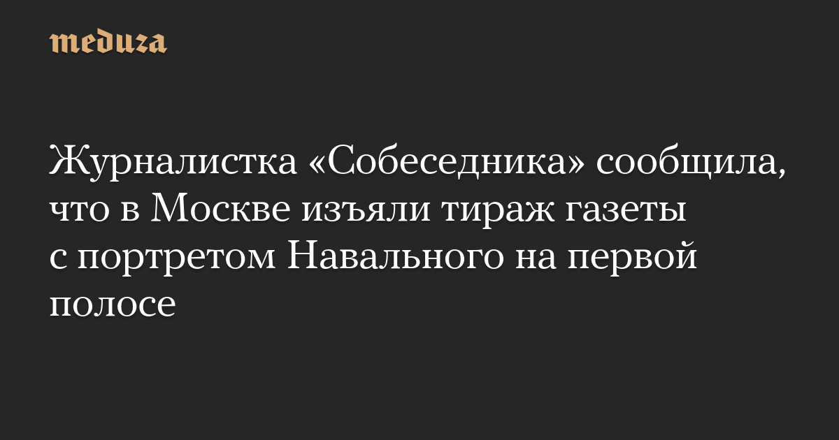 Журналистка «Собеседника» сообщила, что в Москве изъяли тираж газеты с портретом Навального на первой полосе