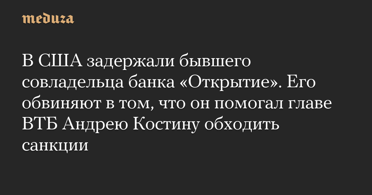 В США задержали бывшего совладельца банка «Открытие». Его обвиняют в том, что он помогал главе ВТБ Андрею Костину обходить санкции