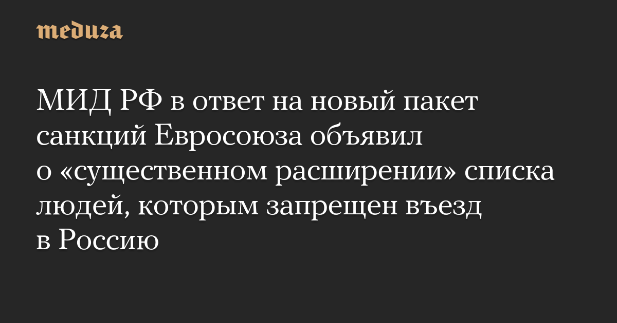 МИД РФ в ответ на новый пакет санкций Евросоюза объявил о «существенном расширении» списка людей, которым запрещен въезд в Россию