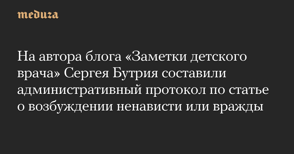 На автора блога «Заметки детского врача» Сергея Бутрия составили административный протокол по статье о возбуждении ненависти или вражды