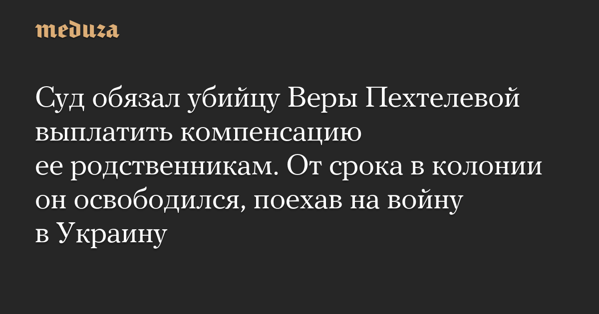 Суд обязал убийцу Веры Пехтелевой выплатить компенсацию ее родственникам. От срока в колонии он освободился, поехав на войну в Украину