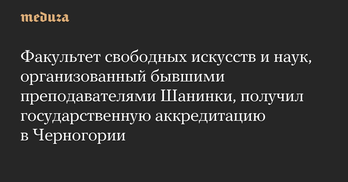 Факультет свободных искусств и наук, организованный бывшими преподавателями Шанинки, получил государственную аккредитацию в Черногории