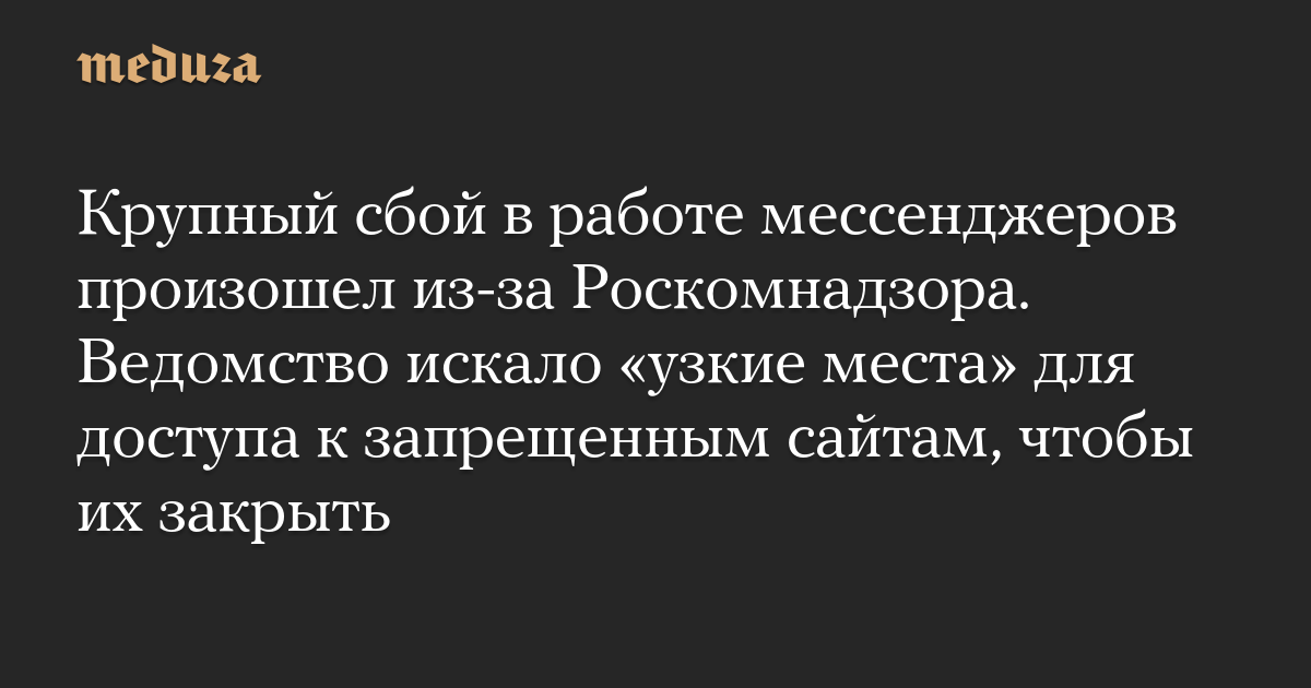 Крупный сбой в работе мессенджеров произошел из-за Роскомнадзора. Ведомство искало «узкие места» для доступа к запрещенным сайтам, чтобы их закрыть