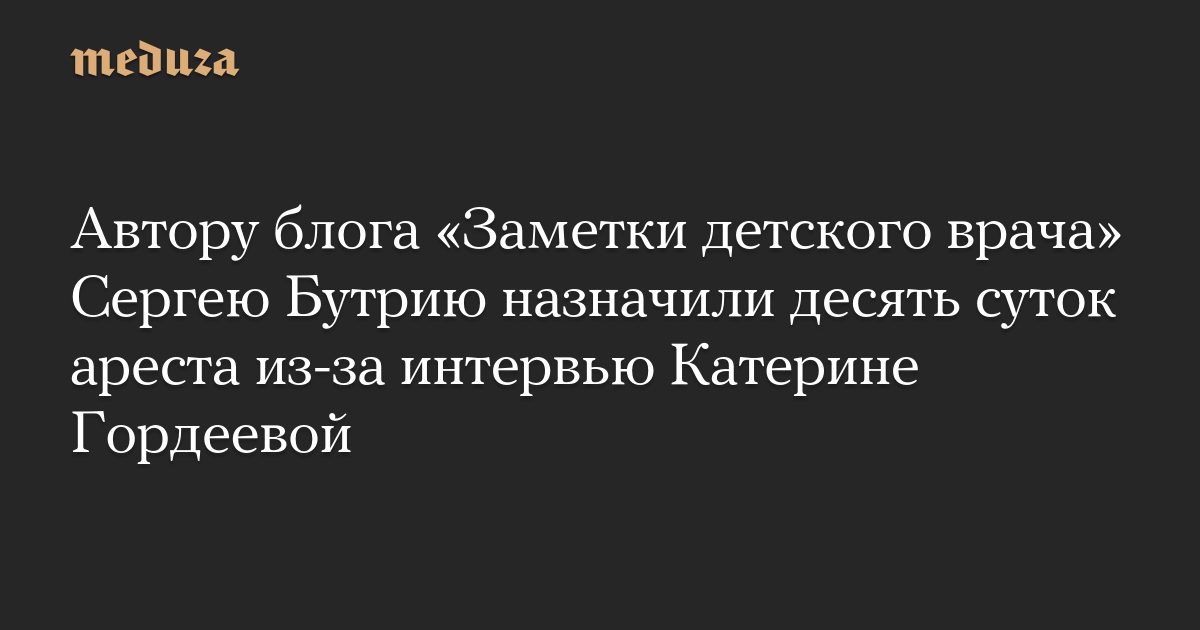 Автору блога «Заметки детского врача» Сергею Бутрию назначили десять суток ареста из-за интервью Катерине Гордеевой