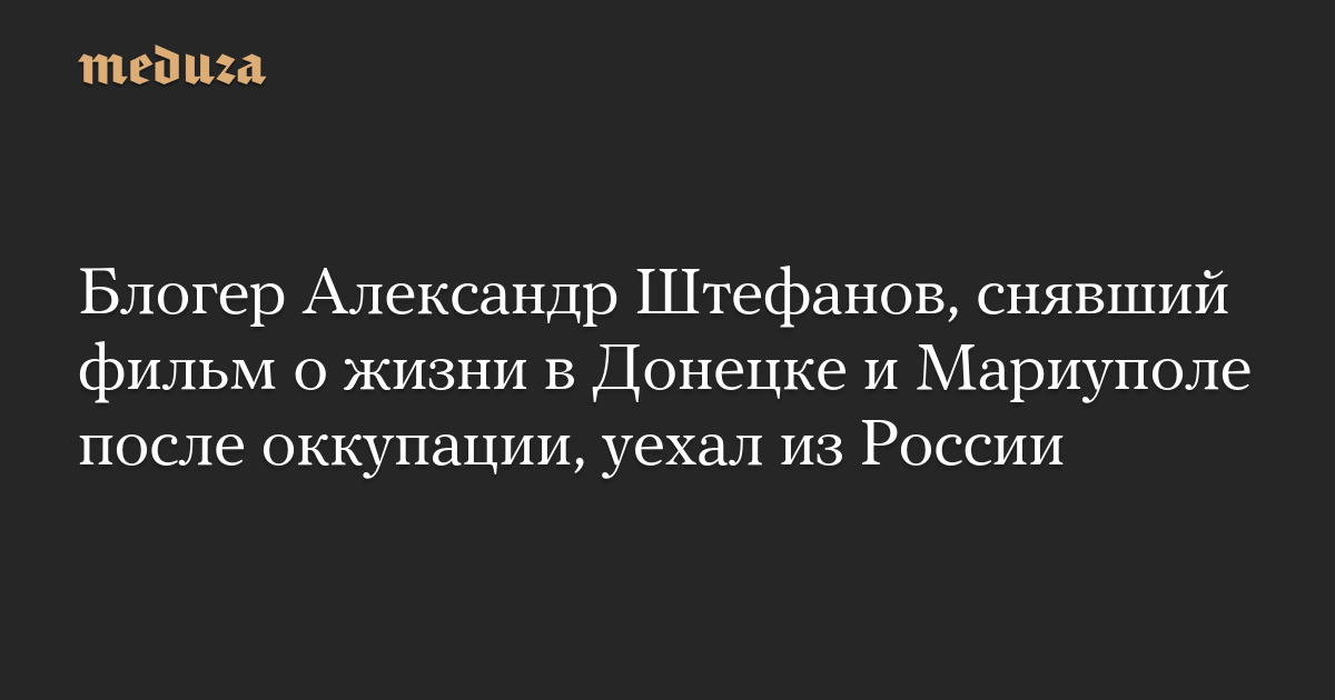 Блогер Александр Штефанов, снявший фильм о жизни в Донецке и Мариуполе после оккупации, уехал из России