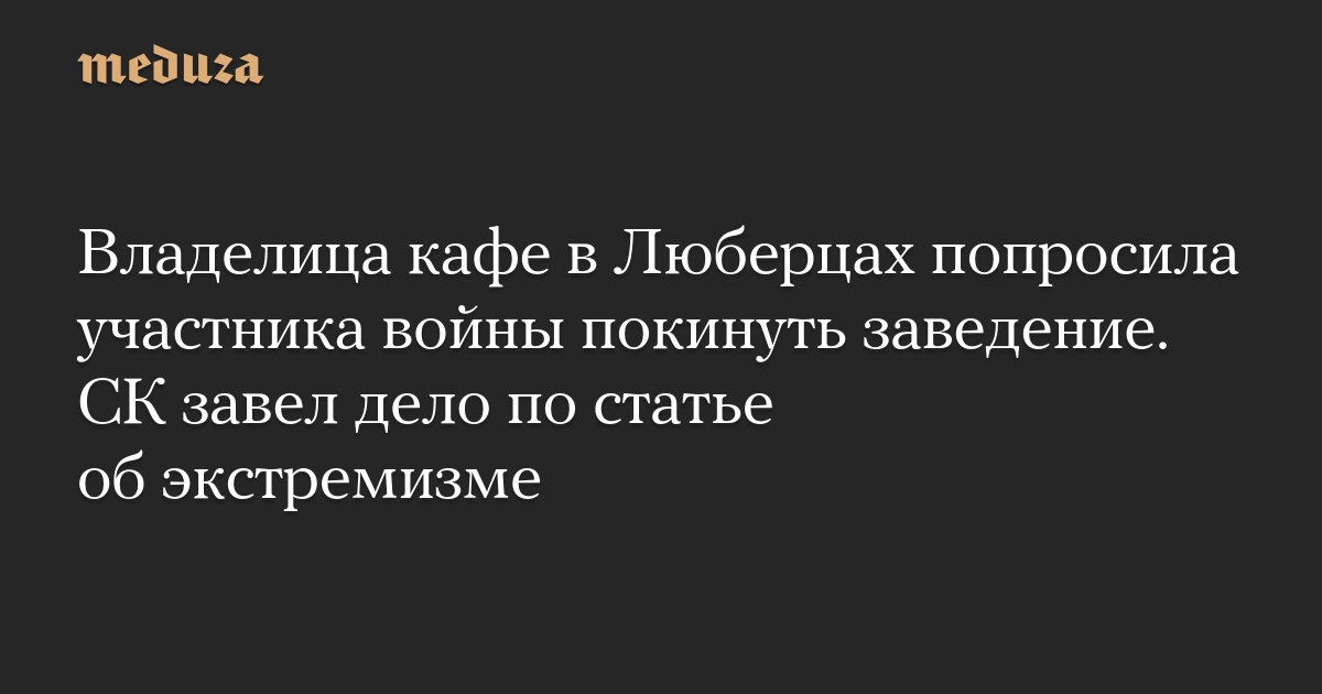 Главное следственное управление СК по Московской области возбудило уголовное дело по статье о возбуждении ненависти либо вражды (часть 1 статьи 282 УК) в связи с тем, что владелица кафе в Люберцах, как утверждает ведомство, не пускала в заведение «участников СВО» и опубликовала пост «экстремистского характера».