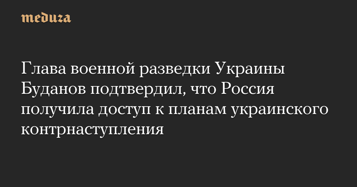Глава военной разведки Украины Буданов подтвердил, что Россия получила доступ к планам украинского контрнаступления
