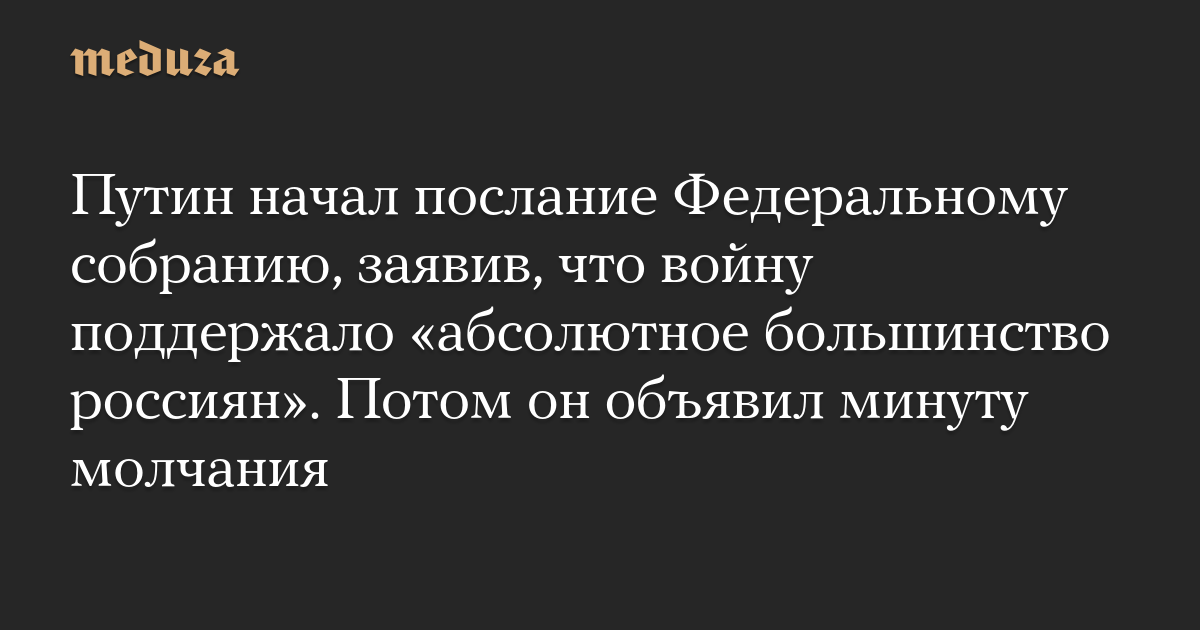 Путин начал послание Федеральному собранию, заявив, что войну поддержало «абсолютное большинство россиян». Потом он объявил минуту молчания