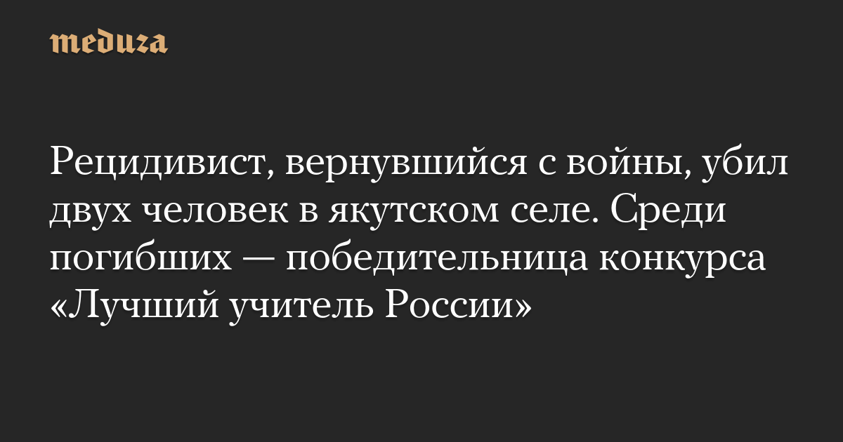 Рецидивист, вернувшийся с войны, убил двух человек в якутском селе. Среди погибших — победительница конкурса «Лучший учитель России»