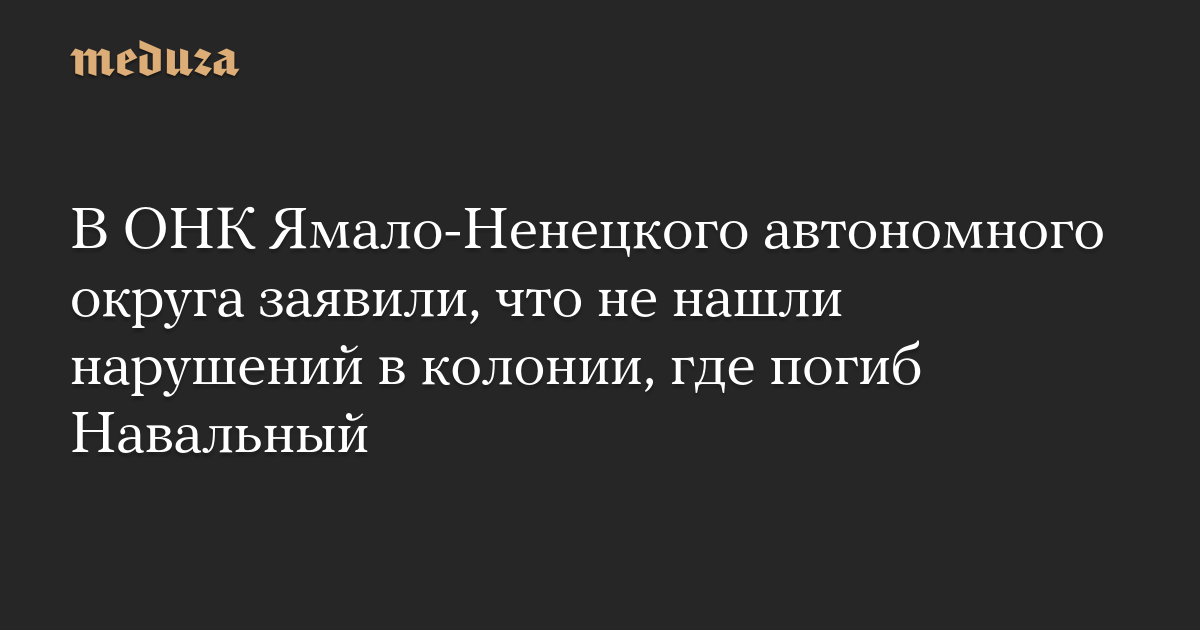 В ОНК Ямало-Ненецкого автономного округа заявили, что не нашли нарушений в колонии, где погиб Навальный