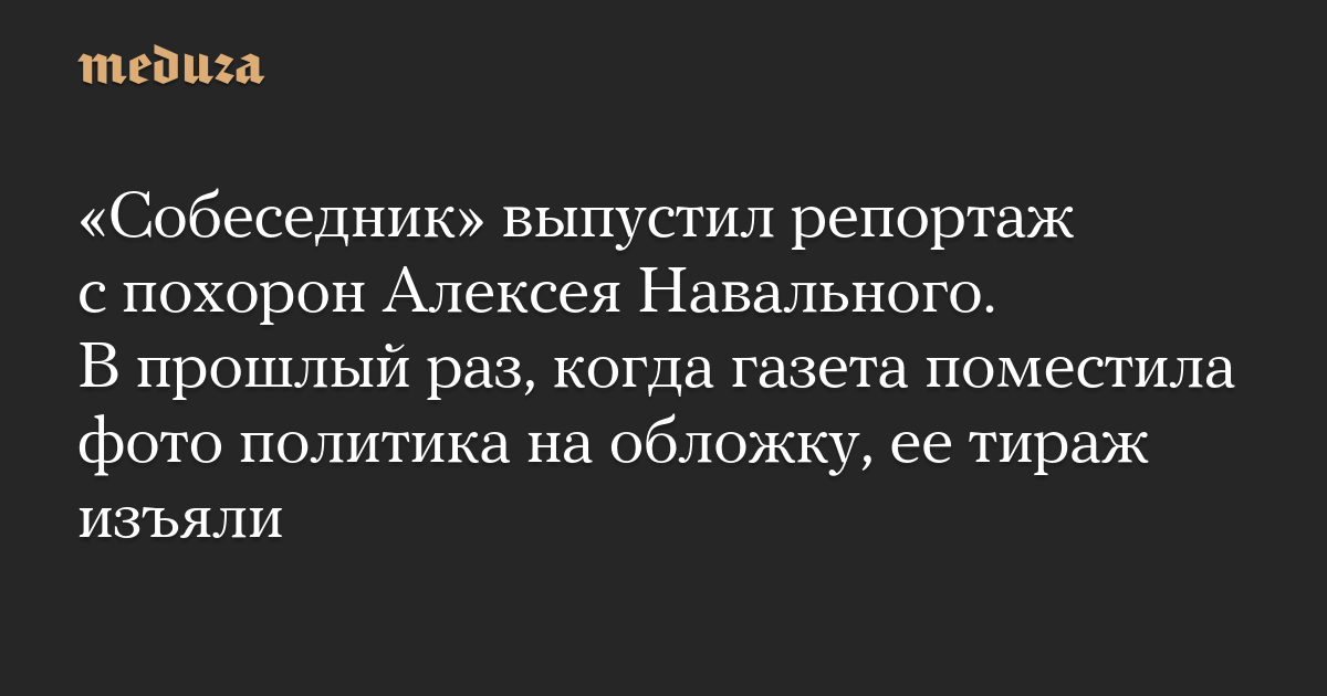 «Собеседник» выпустил репортаж с похорон Алексея Навального. В прошлый раз, когда газета поместила фото политика на обложку, ее тираж изъяли