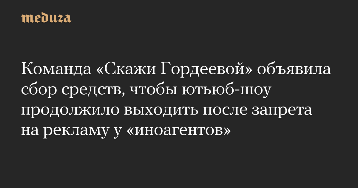 Команда «Скажи Гордеевой» объявила сбор средств, чтобы ютьюб-шоу продолжило выходить после запрета на рекламу у «иноагентов»