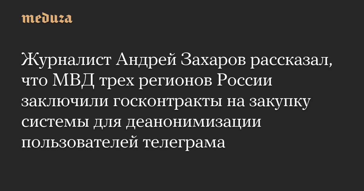 Журналист Андрей Захаров рассказал, что МВД трех регионов России заключили госконтракты на закупку системы для деанонимизации пользователей телеграма