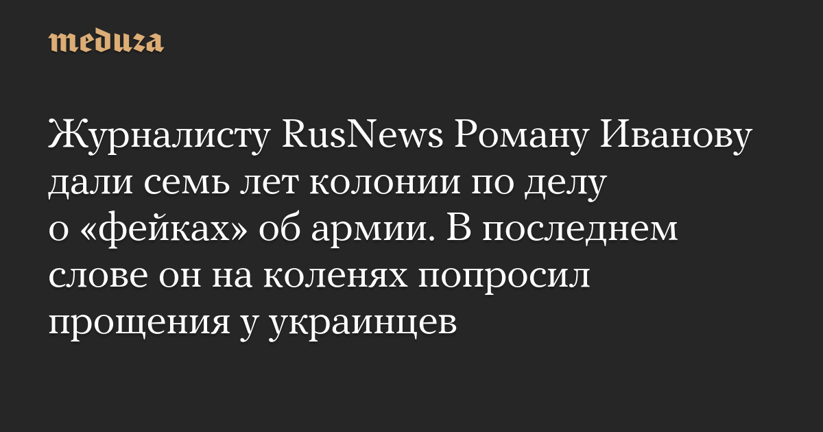 Журналисту RusNews Роману Иванову дали семь лет колонии по делу о «фейках» об армии. В последнем слове он на коленях попросил прощения у украинцев