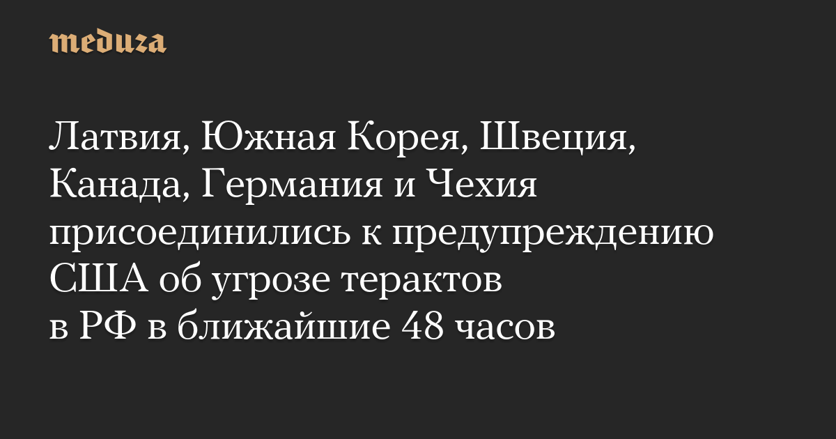 Латвия, Южная Корея, Швеция, Канада, Германия и Чехия присоединились к предупреждению США об угрозе терактов в РФ в ближайшие 48 часов