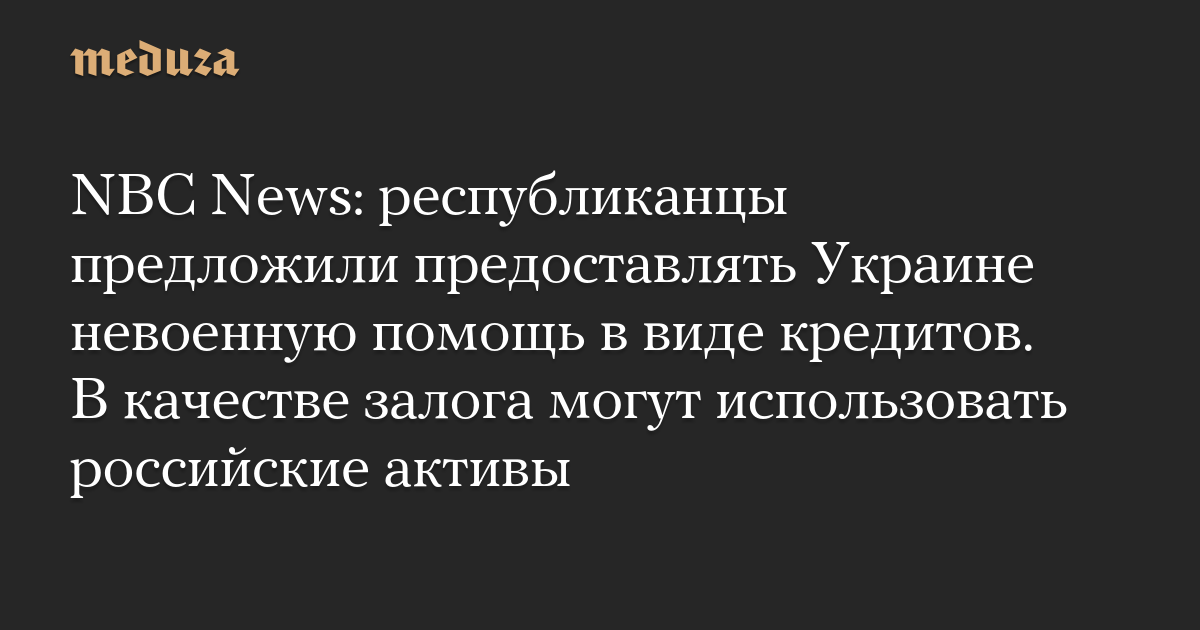 NBC News: республиканцы предложили предоставлять Украине невоенную помощь в виде кредитов. В качестве залога могут использовать российские активы