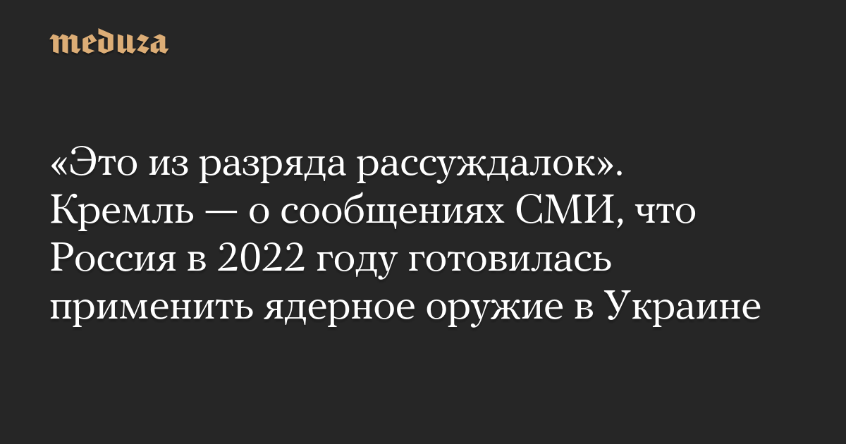 «Это из разряда рассуждалок». Кремль — о сообщениях СМИ, что Россия в 2022 году готовилась применить ядерное оружие в Украине