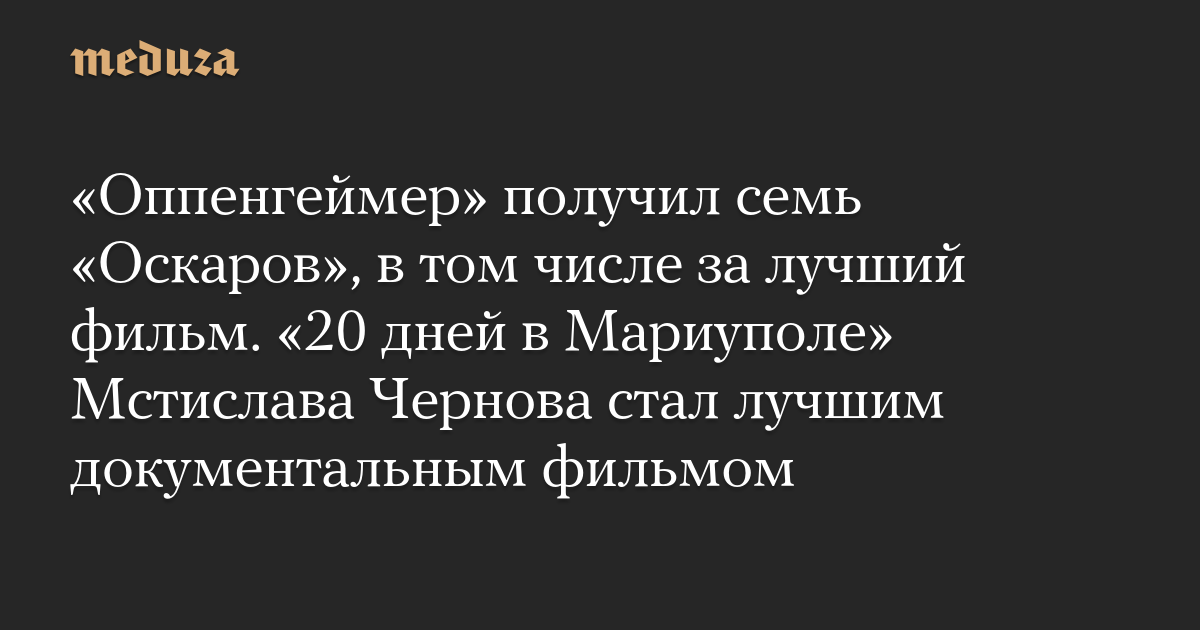 «Оппенгеймер» получил семь «Оскаров», в том числе за лучший фильм. «20 дней в Мариуполе» Мстислава Чернова стал лучшим документальным фильмом