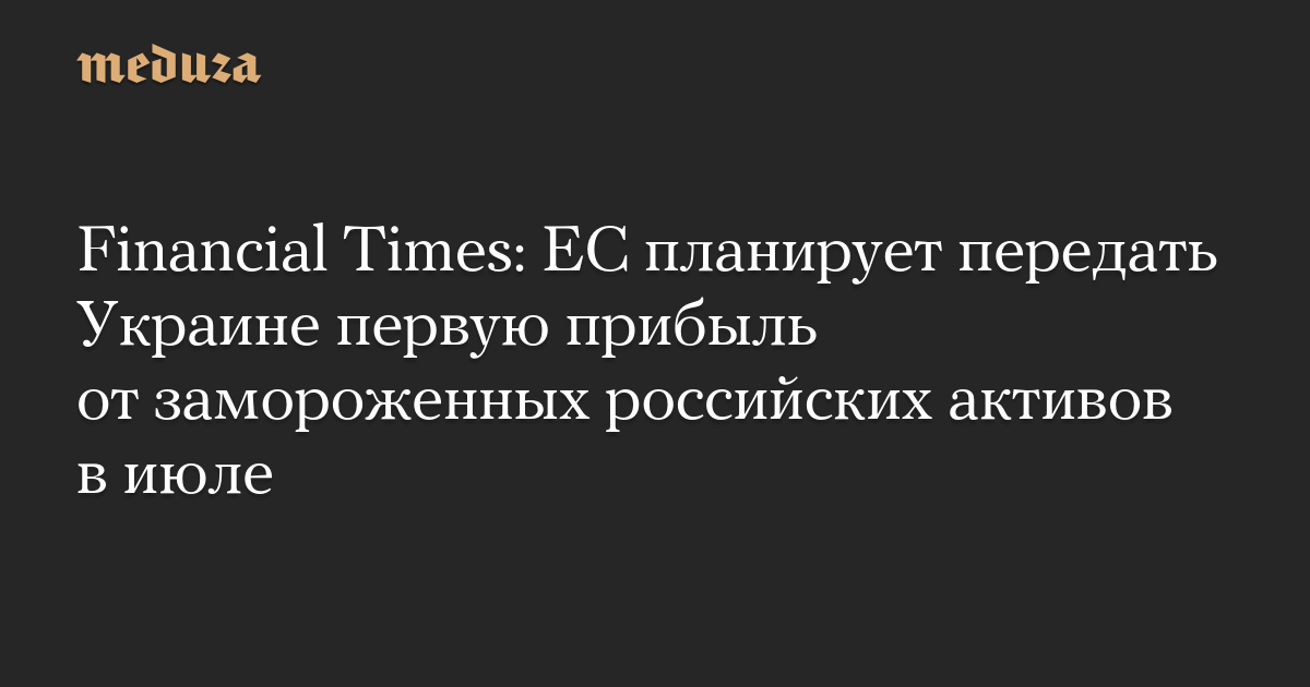 Financial Times: ЕС планирует передать Украине первую прибыль от замороженных российских активов в июле