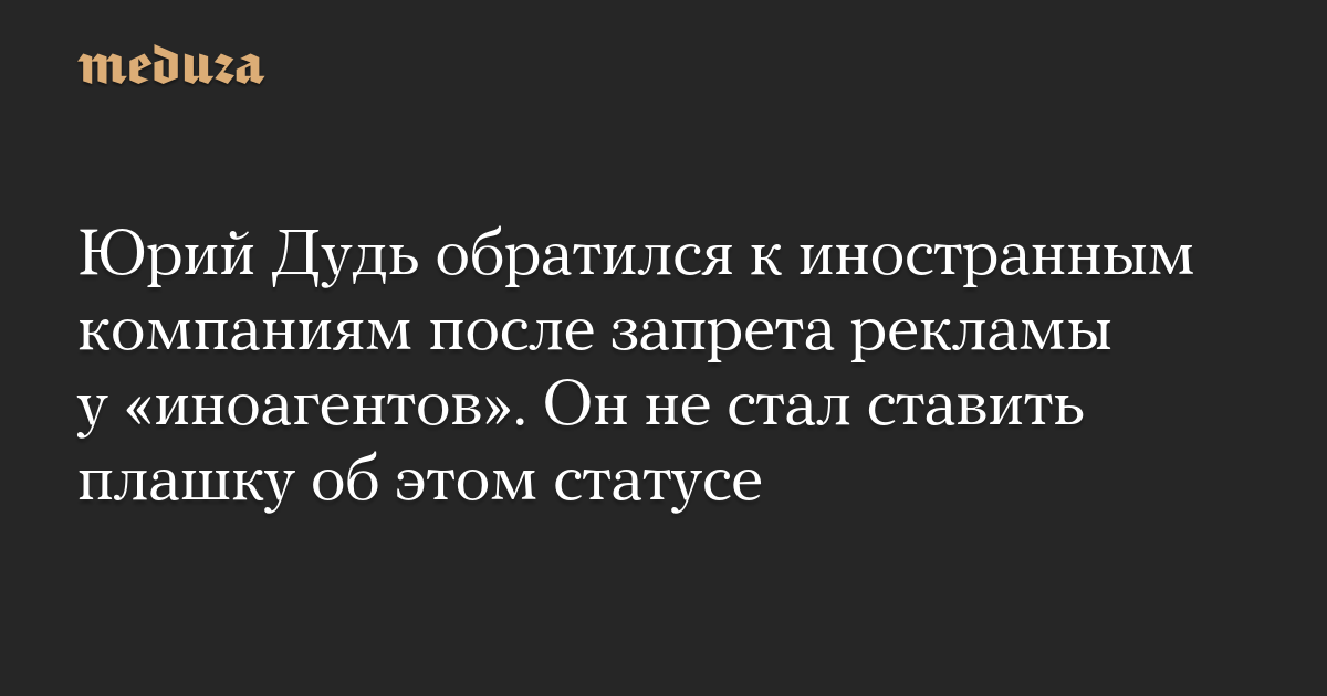 Юрий Дудь обратился к иностранным компаниям после запрета рекламы у «иноагентов». Он не стал ставить плашку об этом статусе