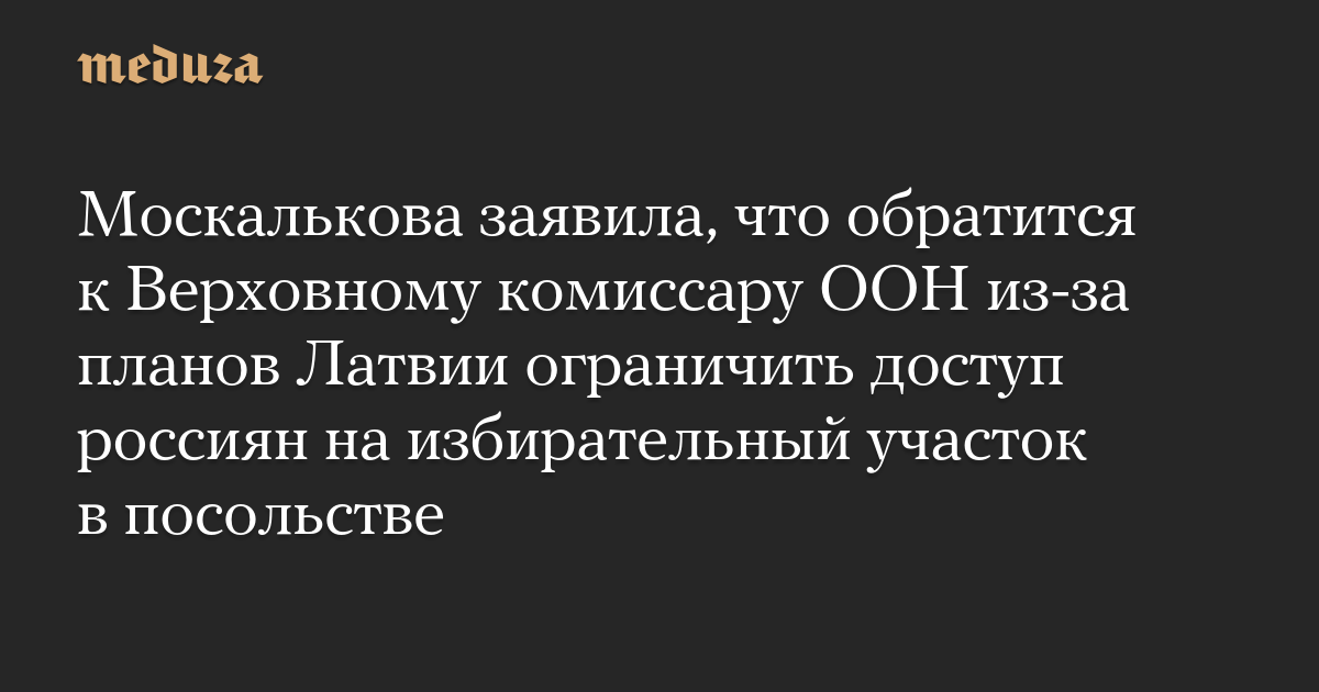 Москалькова заявила, что обратится к Верховному комиссару ООН из-за планов Латвии ограничить доступ россиян на избирательный участок в посольстве