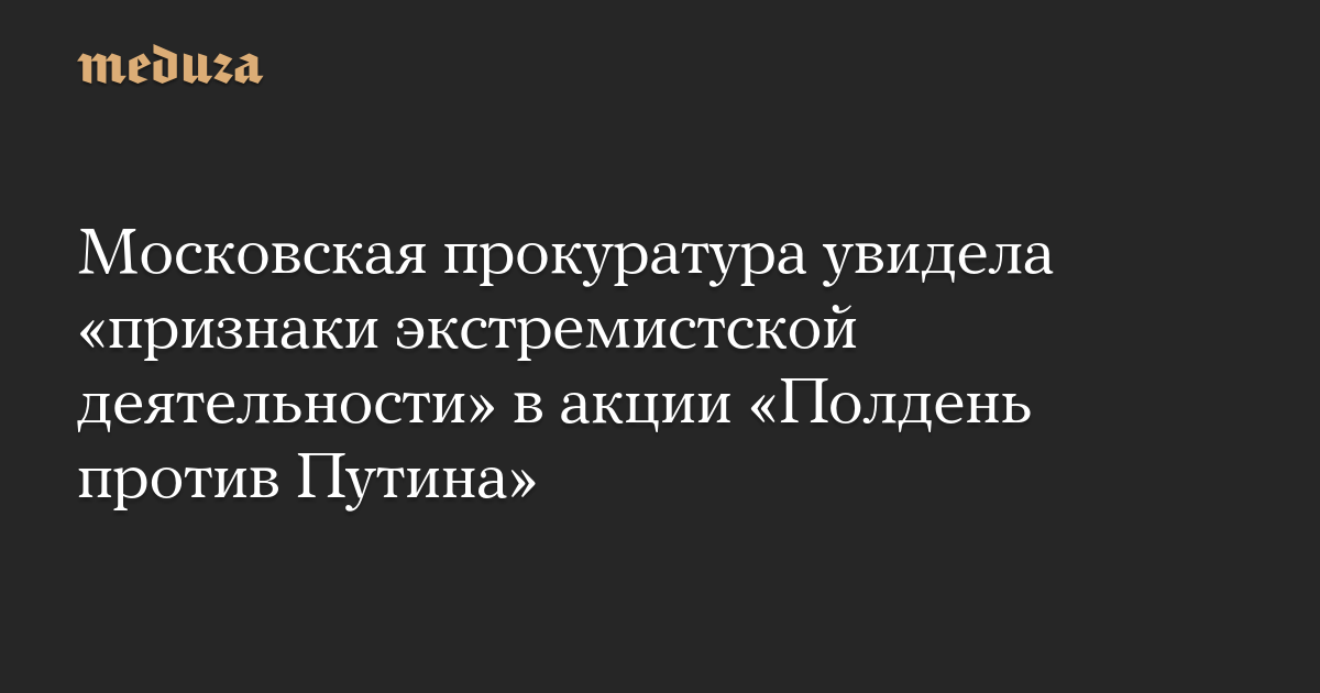 Московская прокуратура увидела «признаки экстремистской деятельности» в акции «Полдень против Путина»