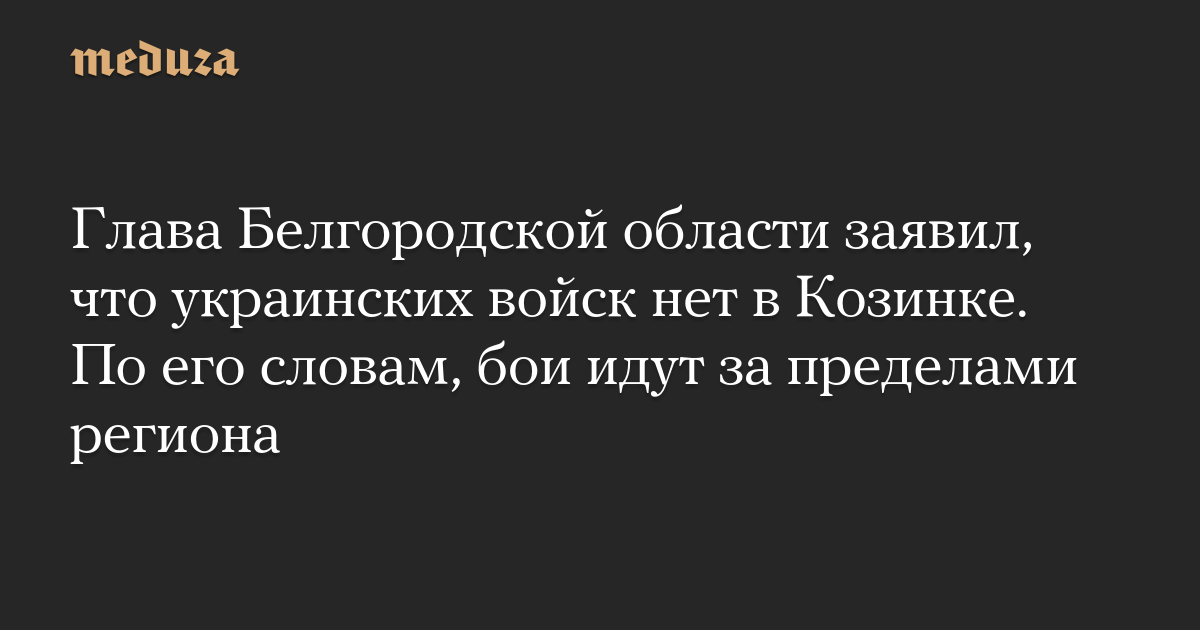 Глава Белгородской области заявил, что украинских войск нет в Козинке. По его словам, бои идут за пределами региона