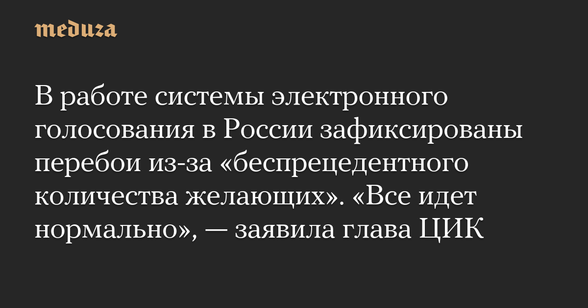 В работе системы электронного голосования в России зафиксированы перебои из-за «беспрецедентного количества желающих». «Все идет нормально», — заявила глава ЦИК