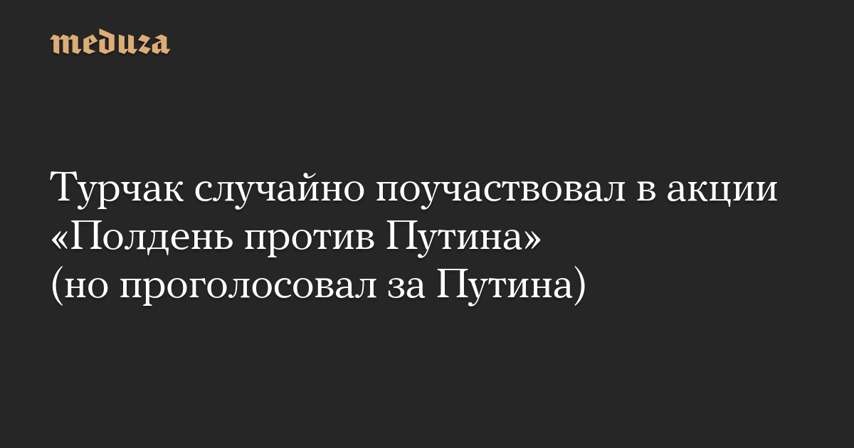 «В полдень за нашего Президента Владимира Владимировича Путина! За Россию!» — отчитался он в своем телеграм-канале. Вскоре пост отредактировали, убрав из него упоминания полудня, которое отсылает к протестной акции «Полдень против Путина».