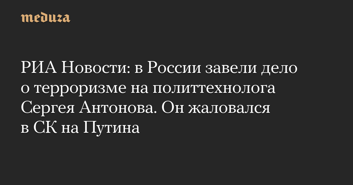 РИА Новости: в России завели дело о терроризме на политтехнолога Сергея Антонова. Он жаловался в СК на Путина