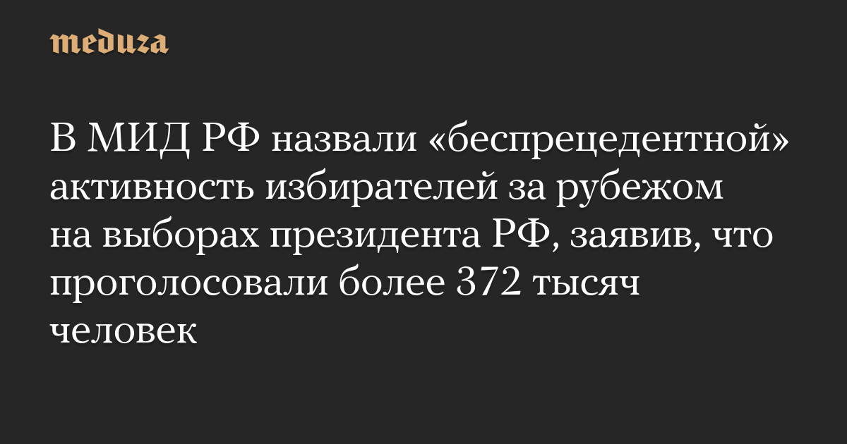 В МИД РФ назвали «беспрецедентной» активность избирателей за рубежом на выборах президента РФ, заявив, что проголосовали более 372 тысяч человек
