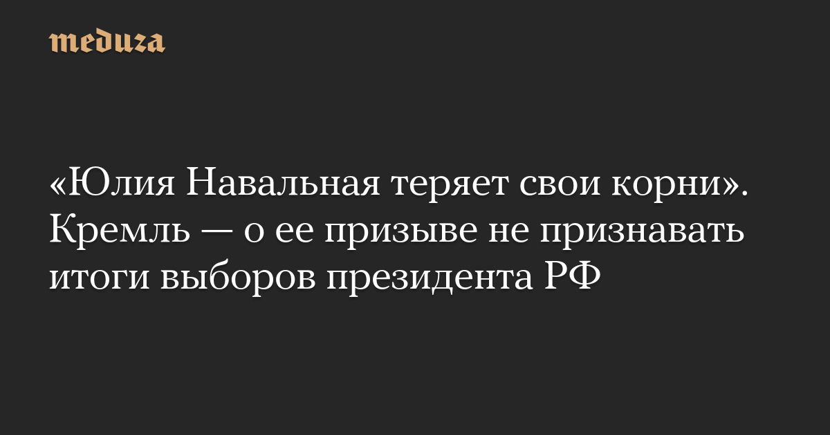 «Юлия Навальная теряет свои корни». Кремль — о ее призыве не признавать итоги выборов президента РФ