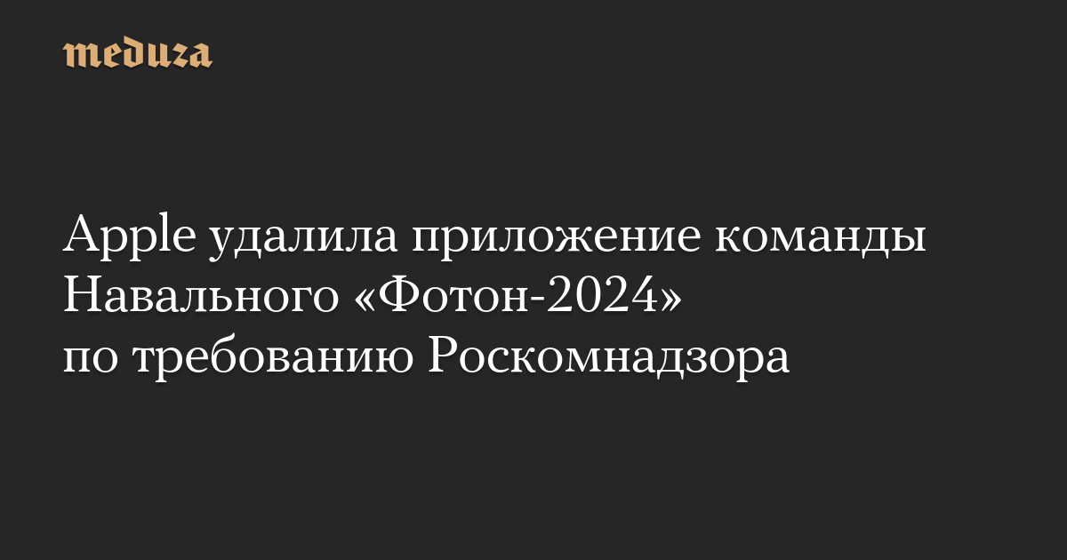 Компания Apple удалила из AppStore приложение «Фотон-2024», разработанное командой Алексея Навального для протестного голосования на выборах президента РФ. Как заявил директор ФБК Иван Жданов, это было сделано по требованию Роскомнадзора.