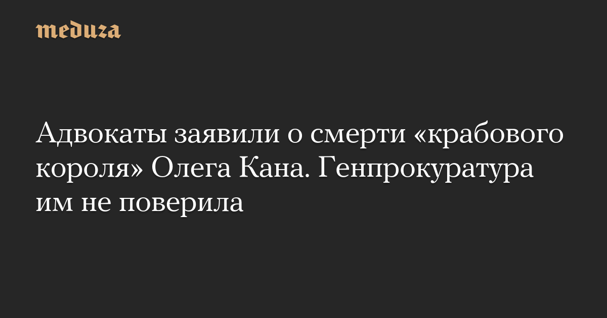 Адвокаты Олега Кана, которого СМИ называют «крабовым королем», заявили на заседании Арбитражного суда о смерти бизнесмена и попросили в связи с этим закрыть дело, возбужденное в отношении него по иску Генпрокуратуры.
