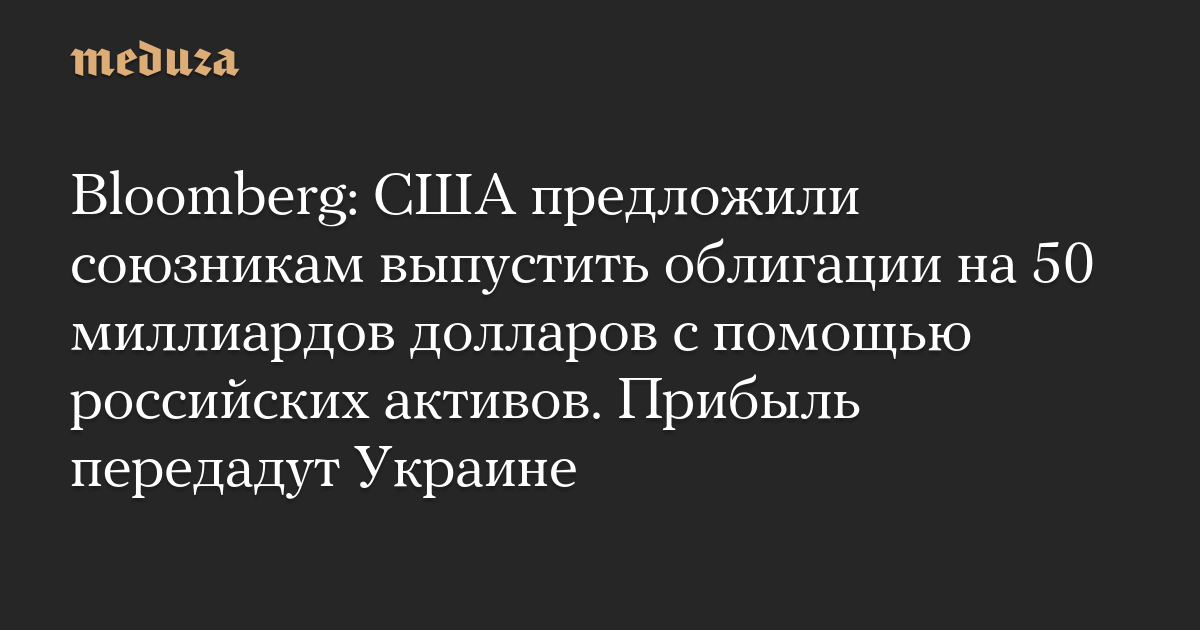 Bloomberg: США предложили союзникам выпустить облигации на 50 миллиардов долларов с помощью российских активов. Прибыль передадут Украине