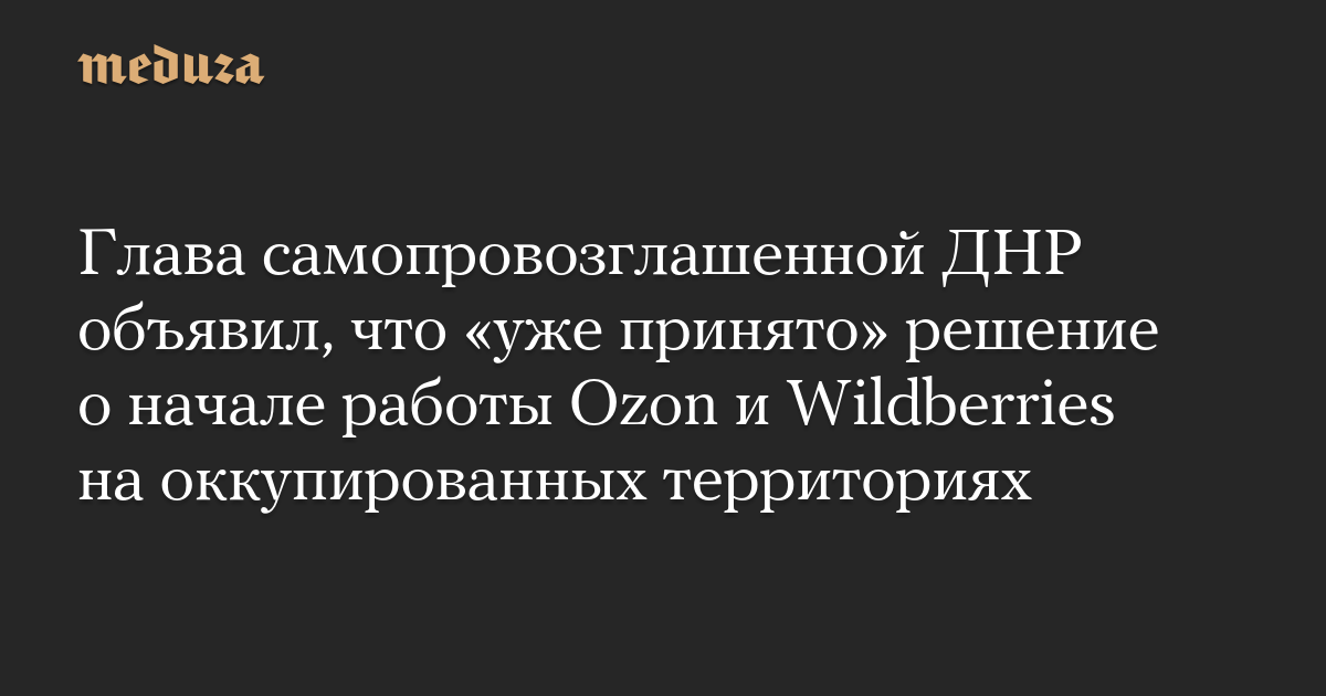 Глава самопровозглашенной ДНР объявил, что «уже принято» решение о начале работы Ozon и Wildberries на оккупированных территориях