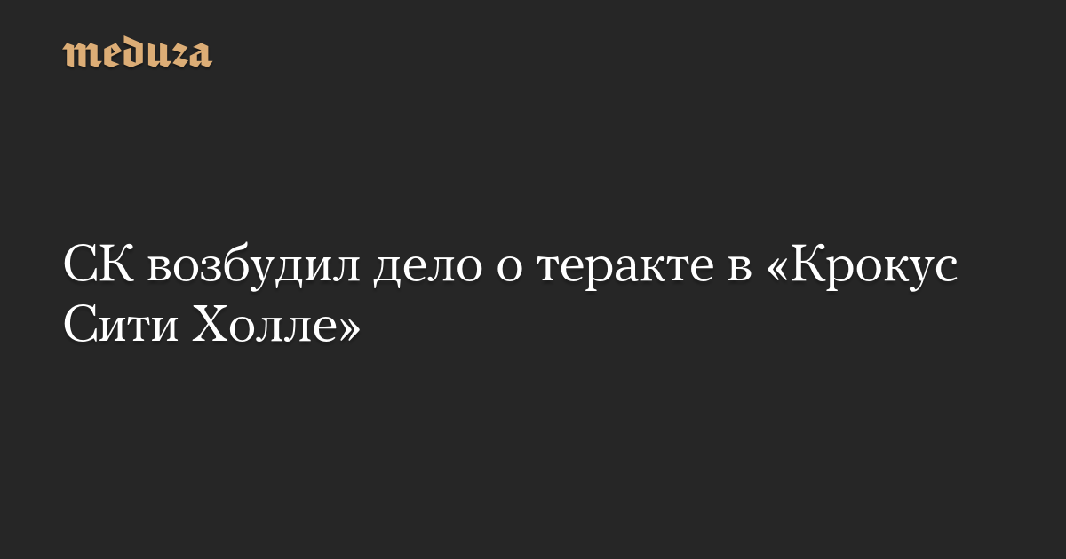 СК возбудил дело о теракте в «Крокус Сити Холле»