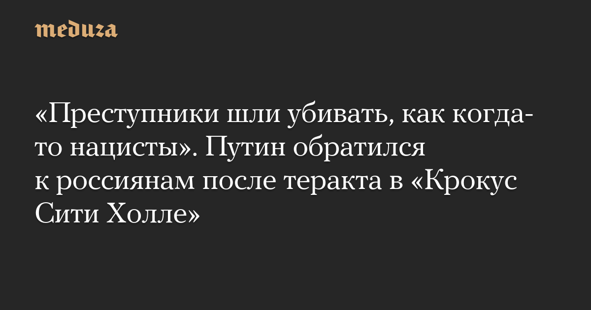 «Преступники шли убивать, как когда-то нацисты». Путин обратился к россиянам после теракта в «Крокус Сити Холле»