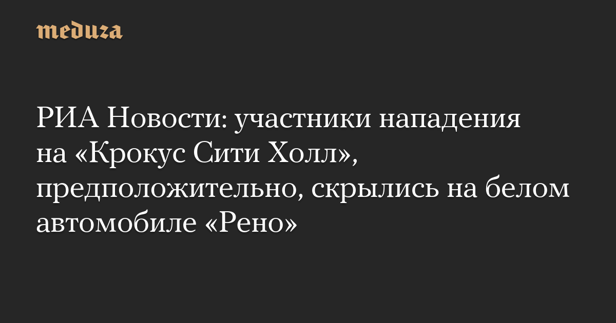 РИА Новости: участники нападения на «Крокус Сити Холл», предположительно, скрылись на белом автомобиле «Рено»