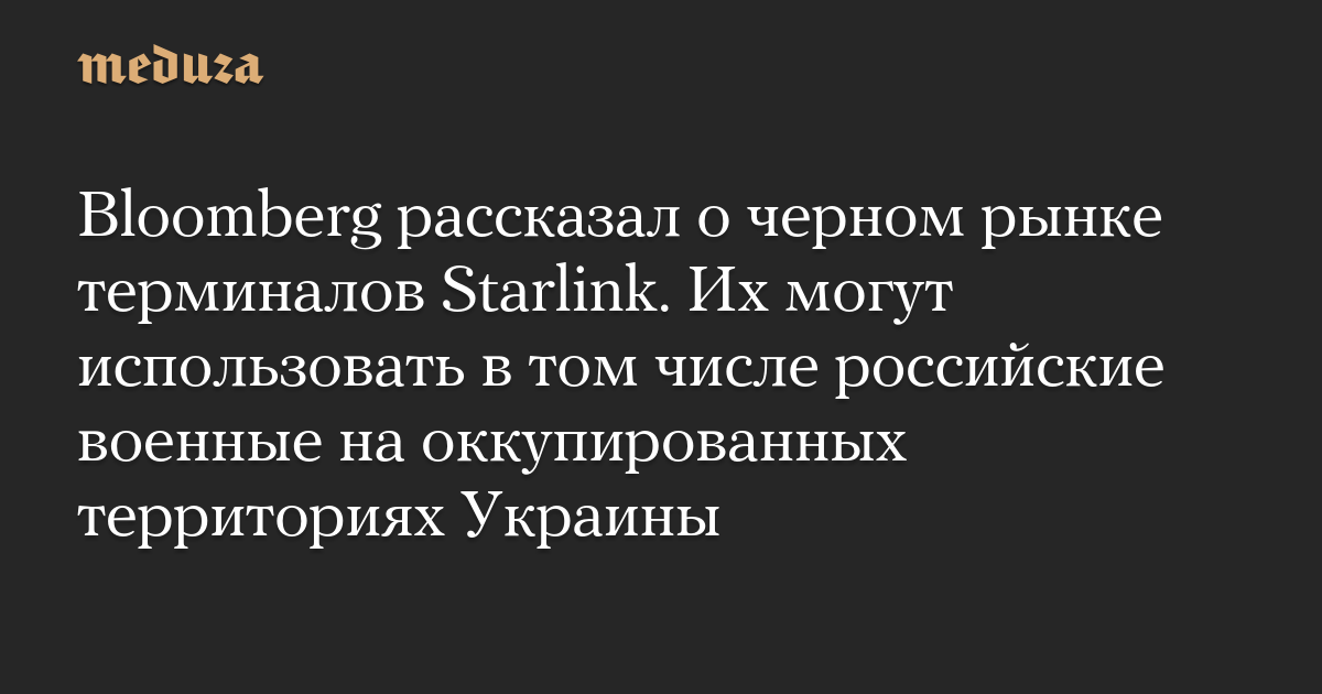 Bloomberg рассказал о черном рынке терминалов Starlink. Их могут использовать в том числе российские военные на оккупированных территориях Украины