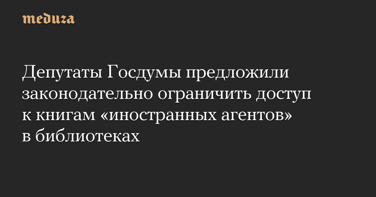 Депутаты Госдумы предложили законодательно ограничить доступ к книгам «иностранных агентов» в библиотеках