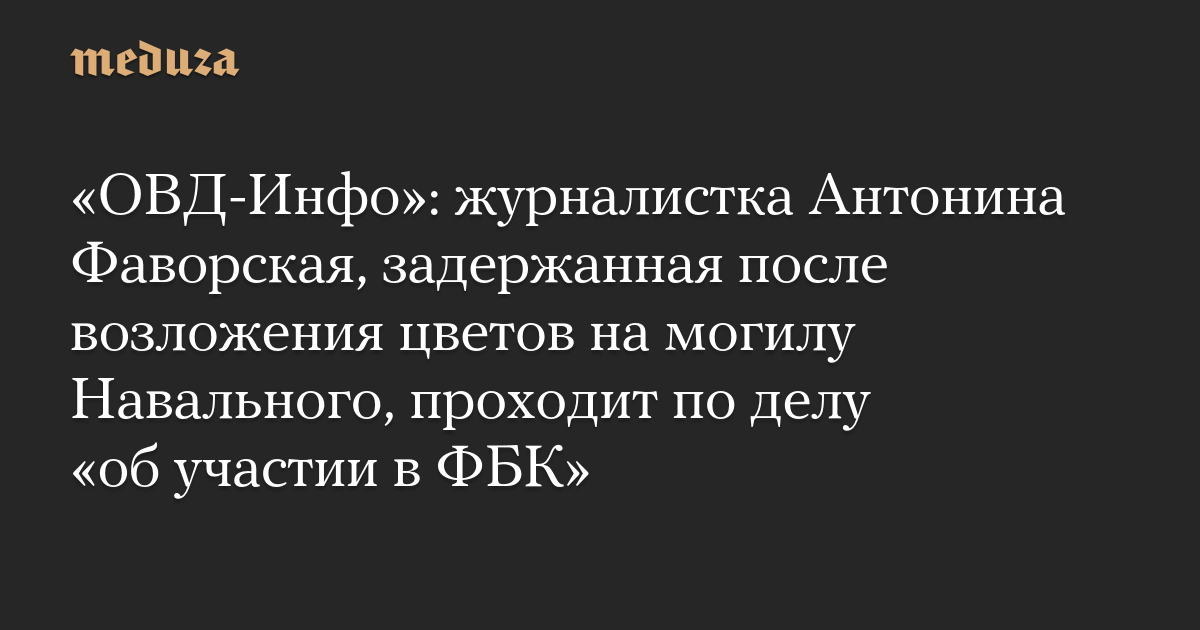 «ОВД-Инфо»: журналистка Антонина Фаворская, задержанная после возложения цветов на могилу Навального, проходит по делу «об участии в ФБК»