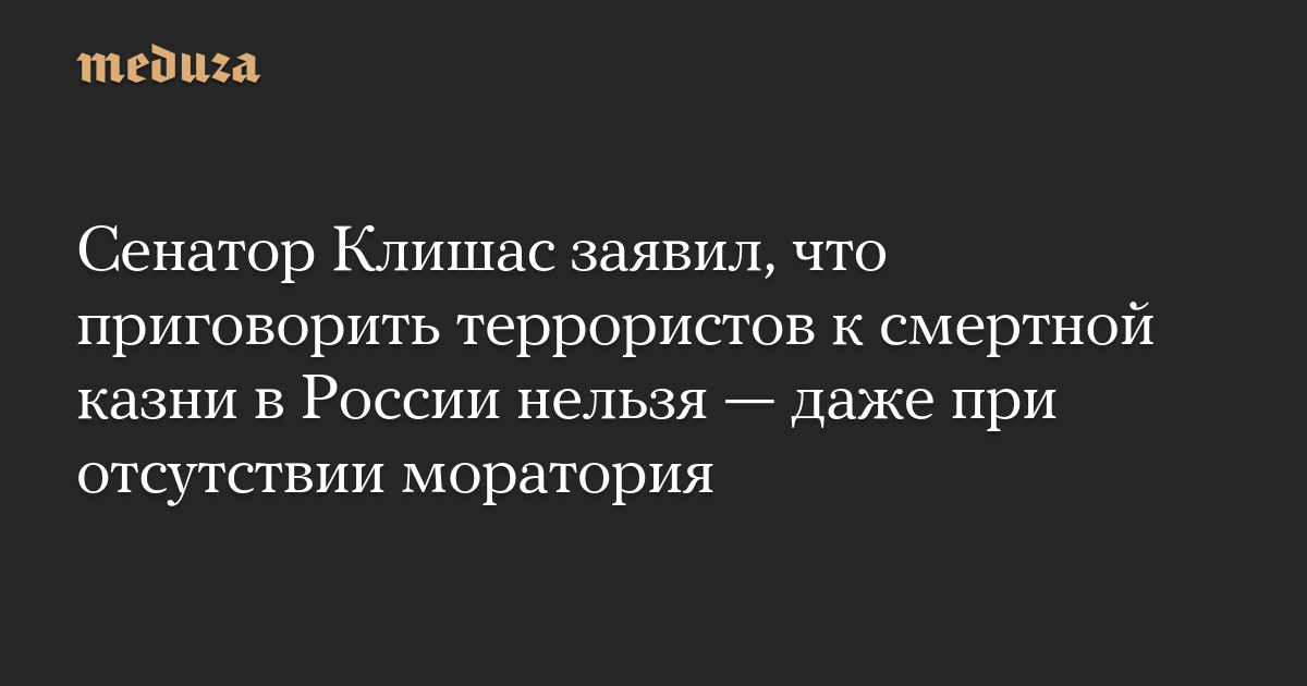 Сенатор Клишас заявил, что приговорить террористов к смертной казни в России нельзя — даже при отсутствии моратория
