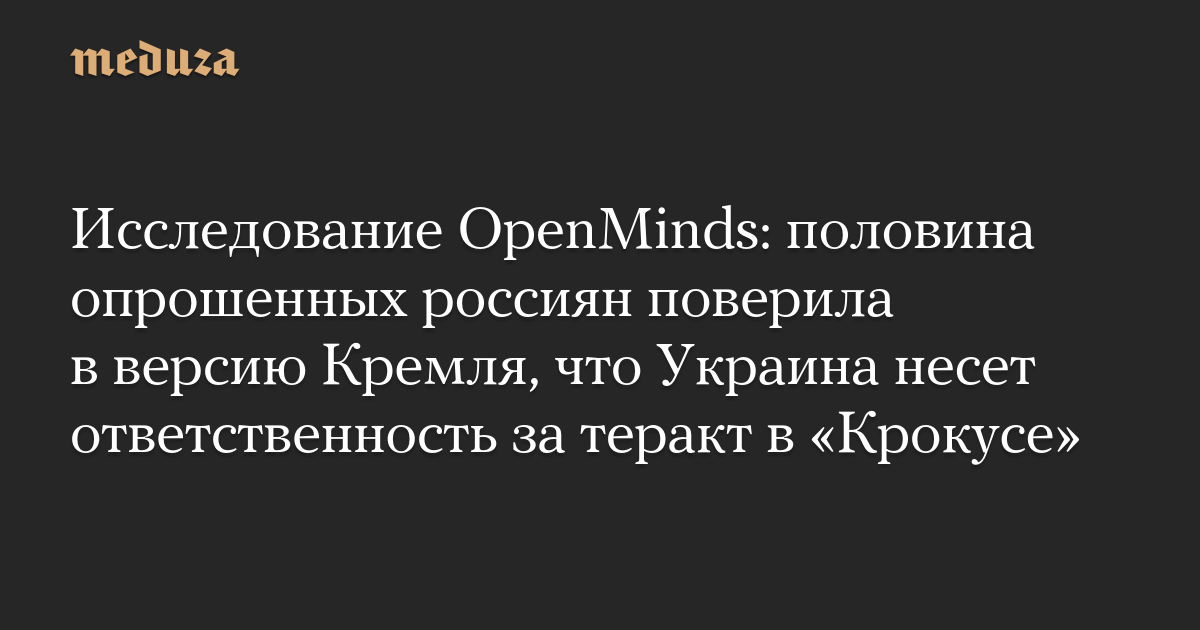 Исследование OpenMinds: половина опрошенных россиян поверила в версию Кремля, что Украина несет ответственность за теракт в «Крокусе»